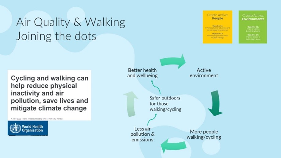 Presentation about the importance of clean air for safe walking and use of outdoor spaces presented at the Get Cork Walking 2023 Showcase