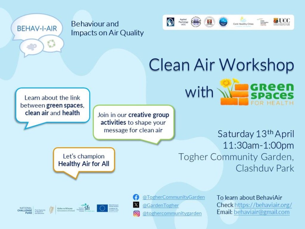 Togher Community Garden are amazing Clean Air Champions who are promoting and caring for the natural lungs of the city. We chatted about air pollution in where information about air pollution can be accessed, what causes it, what the health impacts are, and importantly, what we can do as a community to promote healthy air for all.