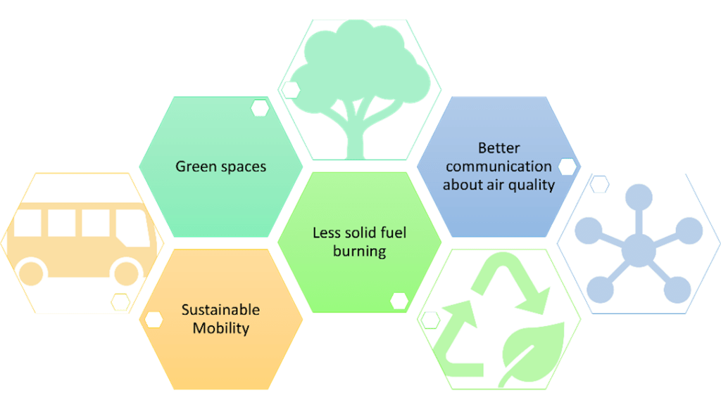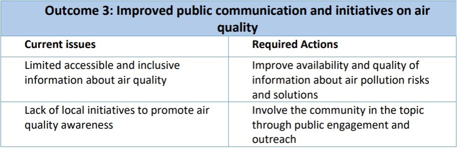 The visions and actions that emerged in the roundtable as part of the vision for Clean Air in Cork City, were identified by stakeholders and are summarised in this mind map above. The roundtable discussions highlighted four key desirable outcomes to achieve clean air for all in Cork City