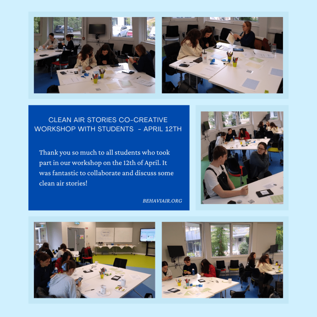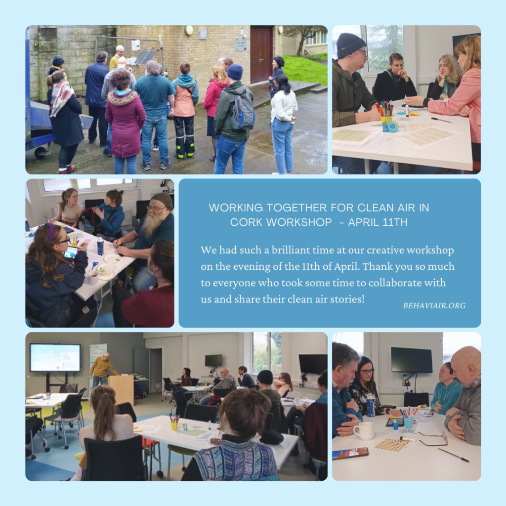 It was fantastic to collaborate and discuss some clean air stories with students in UCC who took part in our workshop on the 12th of April. Everyone shared their personal perspective and experiences with clean air and air pollution while coming together to learn more.
