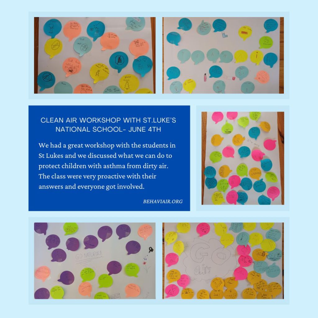 We had a fantastic time in St. Luke’s National School in Douglas talking about clean air. The students were brilliant and everyone got involved discussing clean air and coming up with solutions to protect children with asthma from air pollution.